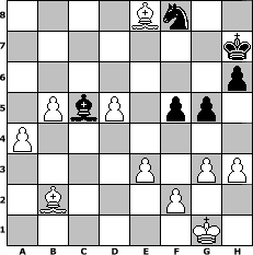 game notation in PGN-format [Event "Neujahr 2019"] [Site "www.myChess.de"] [Date "2018.12.27"] [Round "1"] [White "Seneca"] [Black "hape50"] [ECO "D00"] [WhitemyELO "1519"] [BlackmyELO "1298"] [Result "1-0"] [TimeControl "10/2592000"] [WhiteDays "124"] [BlackDays "108"] [MyChessNo "113906"] 1. d4 d5 2. e3 h6 3. Nf3 Nf6 4. Bd3 Bg4 5. Nbd2 a6 6. c4 dxc4 7. Nxc4 e6 8. O-O Be7 9. Nce5 Nbd7 10. Nxg4 Nxg4 11. h3 Ngf6 12. a3 c6 13. b4 O-O 14. Bb2 b5 15. Rc1 Nh7 16. Rxc6 Ndf6 17. Ne5 Bd6 18. Ng4 Nxg4 19. Qxg4 Nf6 20. Qh4 Nh7 21. Qxd8 Rfxd8 22. Rfc1 Bf8 23. Rb6 Nf6 24. Rcc6 Nd5 25. Rxa6 Rab8 26. Be4 Ne7 27. Rcb6 f5 28. Bf3 Ng6 29. Rxe6 Nh4 30. Be2 Rd5 31. Rab6 Rdd8 32. Rxb8 Rxb8 33. d5 Rd8 34. Bxb5 Kh7 35. Bc6 Ng6 36. b5 Bc5 37. a4 Nf8 38. Re8 Rxe8 39. Bxe8 g5 40. g3 1-0 position notation in FEN-format 4Bn2/7k/7p/1PbP1pp1/P7/4P1PP/1B3P2/6K1 - - - 0 40 Captured white pieces: Captured black pieces: Click on a captured piece in order to display the desired move!