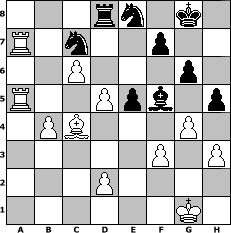 | game notation in PGN-format [Event "Winter 2017"] [Site "www.myChess.de"] [Date "2017.01.28"] [Round "2"] [White "HenrySchinasky"] [Black "HPB2005"] [ECO "E92"] [WhitemyELO "2117"] [BlackmyELO "1940"] [Result "1-0"] [TimeControl "10/2592000"] [WhiteDays "107"] [BlackDays "087"] [MyChessNo "106626"] 1. d4 Nf6 2. c4 g6 3. Nc3 Bg7 4. e4 d6 5. Nf3 O-O 6. Be2 e5 7. Be3 Nbd7 8. O-O c6 9. d5 c5 10. Ne1 a6 11. h3 Qa5 12. a4 Re8 13. Qc2 Qd8 14. a5 b6 15. axb6 Bb7 16. Na4 a5 17. b3 Nxb6 18. Nc3 Ra6 19. Nd3 Na8 20. Bxc5 dxc5 21. Nxc5 Rb6 22. Rxa5 Rb4 23. Rfa1 Nc7 24. Nd3 Bf8 25. Nxb4 Bxb4 26. Ra7 Qb8 27. R7a4 Bxc3 28. Qxc3 Nxe4 29. Qe3 Nd6 30. Qa7 Rd8 31. c5 Nde8 32. c6 Qxa7 33. Rxa7 Bc8 34. Bc4 Rd6 35. R1a5 Bf5 36. f3 h5 37. b4 Rd8 38. g4 1-0 position notation in FEN-format 3rn1k1/R1n2p2/2P3p1/R2Ppb1p/1PB3P1/5P1P/3P4/6K1 - - - 0 38 Captured white pieces:                              Captured black pieces:                               Click on a captured piece in order to display the desired move!