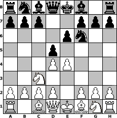 game notation in PGN-format [Event "Geburtstag 22.02."] [Site "www.myChess.de"] [Date "2018.02.24"] [Round "1"] [White "Knight"] [Black "Ziegert"] [ECO "D00"] [WhitemyELO "1051"] [BlackmyELO "1629"] [Result "0-1"] [TimeControl "10/2592000"] [WhiteDays "00"] [BlackDays "29"] [MyChessNo "111582"] 1. d4 d5 2. e4 e6 3. Nc3 Nf6 0-1 position notation in FEN-format rnbqkb1r/ppp2ppp/4pn2/3p4/3PP3/2N5/PPPP1PPP/R1BQKBNR - KQkq - 2 4 Captured white pieces: Captured black pieces: Click on a captured piece in order to display the desired move!