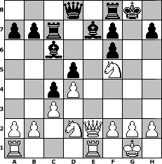 game notation in PGN-format [Event "80 Jahre Weltmeister Max Euwe"] [Site "www.myChess.de"] [Date "2015.07.20"] [Round "1"] [White "miu"] [Black "kalle"] [ECO "B50"] [WhitemyELO "1598"] [BlackmyELO "1637"] [Result "1-0"] [TimeControl "10/2592000"] [WhiteDays "59"] [BlackDays "54"] [MyChessNo "99803"] 1. e4 c5 2. Nf3 d6 3. Bc4 e6 4. c3 Nc6 5. d4 d5 6. exd5 exd5 7. Bb5 Bd7 8. O-O Be7 9. Re1 c4 10. Bxc6 Bxc6 11. Bg5 Nf6 12. Bxf6 gxf6 13. Qe2 Rc8 14. Nbd2 Rc7 15. Nh4 O-O 16. Nf5 1-0 position notation in FEN-format 3q1rk1/ppr1bp1p/2b2p2/3p1N2/2pP4/2P5/PP1NQPPP/R3R1K1 - - - 7 16 Captured white pieces: Captured black pieces: Click on a captured piece in order to display the desired move!