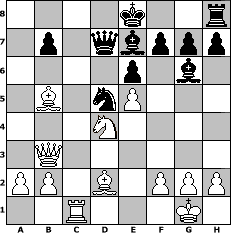 game notation in PGN-format [Event "DK Mannschaftsturnier 2014"] [Site "www.myChess.de"] [Date "2014.01.25"] [Round "1"] [Board "1"] [White "Erich"] [Black "Joschi"] [ECO "B12"] [WhitemyELO "2034"] [BlackmyELO "1613"] [Result "1-0"] [TimeControl "10/3456000"] [WhiteDays "40"] [BlackDays "40"] [MyChessNo "92490"] 1. e4 c6 2. d4 d5 3. e5 Bf5 4. Nf3 e6 5. Be2 Nd7 6. O-O Ne7 7. Nbd2 a6 8. Nb3 Rc8 9. Be3 Bg6 10. Rc1 Nf5 11. Bd2 c5 12. dxc5 Nxc5 13. c4 dxc4 14. Rxc4 Nxb3 15. Rxc8 Qxc8 16. Qxb3 Ne7 17. Nd4 Nd5 18. Rc1 Qd7 19. Bxa6 Be7 20. Bb5 1-0 position notation in FEN-format 4k2r/1p1qbppp/4p1b1/1B1nP3/3N4/1Q6/PP1B1PPP/2R3K1 - k - 2 20 Captured white pieces: Captured black pieces: Click on a captured piece in order to display the desired move!