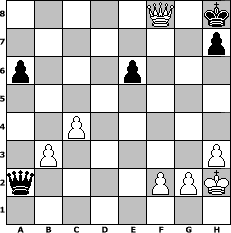 game notation in PGN-format [Event "Frühling 2019"] [Site "www.myChess.de"] [Date "2019.05.10"] [Round "1"] [White "alibengali"] [Black "beowulf"] [ECO "A03"] [WhitemyELO "1679"] [BlackmyELO "1410"] [Result "1-0"] [TimeControl "10/1728000"] [WhiteDays "76"] [BlackDays "79"] [MyChessNo "114995"] 1. f4 d5 2. Nf3 c5 3. e3 Bg4 4. b3 Nc6 5. Bb2 e6 6. h3 Bxf3 7. Qxf3 Nf6 8. Bb5 a6 9. Bxc6+ bxc6 10. O-O Be7 11. c4 O-O 12. d3 Qd7 13. Na3 d4 14. Nc2 dxe3 15. Qxe3 Rfd8 16. Rad1 Qc7 17. Be5 Qa7 18. d4 cxd4 19. Nxd4 Bc5 20. Kh1 Nd7 21. Bxg7 Kxg7 22. Qg3+ Kh8 23. Nxc6 Qc7 24. Nxd8 Rxd8 25. Qc3+ f6 26. Rd3 Bd6 27. Rfd1 Bxf4 28. Rxd7 Rxd7 29. Rxd7 Qxd7 30. Qxf6+ Qg7 31. Qxf4 Qa1+ 32. Kh2 Qxa2 33. Qf8# 1-0 position notation in FEN-format 5Q1k/7p/p3p3/8/2P5/1P5P/q4PPK/8 - - - 1 33 Captured white pieces: Captured black pieces: Click on a captured piece in order to display the desired move!
