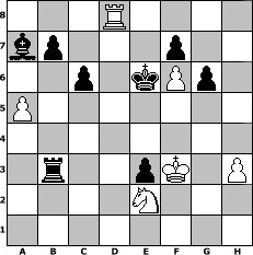 game notation in PGN-format [Event "Vereinsmeisterschaft"] [Site "www.myChess.de"] [Date "2006.08.24"] [Round "2"] [White "Juliette2103"] [Black "BirdofPray1"] [ECO "B01"] [WhitemyELO "1642"] [BlackmyELO "2115"] [Result "0-1"] [TimeControl "10/2592000"] [WhiteDays "65"] [BlackDays "55"] [MyChessNo "27966"] 1. e4 d5 2. exd5 Qxd5 3. Nc3 Qd6 4. Nf3 Bg4 5. Be2 Nf6 6. O-O c6 7. d4 Nbd7 8. Be3 e6 9. h3 Bh5 10. Ng5 Bg6 11. Bd3 Qc7 12. f4 Be7 13. Bxg6 hxg6 14. Nge4 O-O-O 15. Qf3 Nb6 16. Nxf6 Bxf6 17. Rad1 Nc4 18. b3 Nxe3 19. Qxe3 Qb6 20. Ne2 Rh5 21. c4 e5 22. c5 exd4 23. cxb6 dxe3 24. bxa7 Ra5 25. Rxd8+ Bxd8 26. a4 Bb6 27. g4 Bxa7 28. Rc1 Rd5 29. Kg2 Rd2 30. Kf3 Rb2 31. Rc3 Rb1 32. Ng3 Kc7 33. f5 Rb2 34. Ne2 gxf5 35. gxf5 Kd6 36. f6 g6 37. a5 Rb1 38. Rd3+ Ke6 39. Rd8 Rxb3 0-1 position notation in FEN-format 3R4/bp3p2/2p1kPp1/P7/8/1r2pK1P/4N3/8 - - - 0 40 Captured white pieces: Captured black pieces: Click on a captured piece in order to display the desired move!
