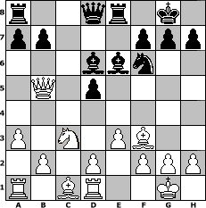 game notation in PGN-format [Event "Februar 2018"] [Site "www.myChess.de"] [Date "2018.02.03"] [Round "1"] [White "Seneca"] [Black "Knight"] [ECO "D00"] [WhitemyELO "1426"] [BlackmyELO "1091"] [Result "1-0"] [TimeControl "10/1728000"] [WhiteDays "27"] [BlackDays "00"] [MyChessNo "111245"] 1. d4 d5 2. e3 Nc6 3. c3 e5 4. dxe5 Nxe5 5. Nf3 Nc6 6. Be2 Nf6 7. O-O Bd6 8. Nd4 Nxd4 9. cxd4 O-O 10. Nc3 Re8 11. a3 c5 12. Bf3 cxd4 13. Qxd4 Be5 14. Qc5 Be6 15. Rd1 Bd6 16. Qb5 1-0 position notation in FEN-format r2qr1k1/pp3ppp/3bbn2/1Q1p4/8/P1N1PB2/1P1P1PPP/R1BR2K1 - - - 6 16 Captured white pieces: Captured black pieces: Click on a captured piece in order to display the desired move!