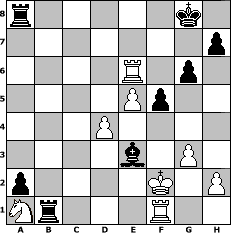 game notation in PGN-format [Event "Oktober Gold"] [Site "www.myChess.de"] [Date "2025.10.11"] [Round "1"] [White "deepsabel"] [Black "Grubengeist"] [ECO "?"] [WhitemyELO "1799"] [BlackmyELO "2171"] [Result "0-1"] [TimeControl "10/1728000"] [WhiteDays "80"] [BlackDays "80"] [MyChessNo "133707"] 1. d4 Nf6 2. c4 g6 3. Nc3 d5 4. cxd5 Nxd5 5. e4 Nxc3 6. bxc3 c5 7. Nf3 Bg7 8. Be3 Qa5 9. Qd2 O-O 10. Rc1 cxd4 11. cxd4 Qxd2+ 12. Nxd2 e6 13. Bb5 a6 14. Ba4 b5 15. Bd1 a5 16. O-O Bb7 17. Bf3 Na6 18. a3 f5 19. e5 Rfb8 20. Bxb7 Rxb7 21. Rc6 a4 22. Rxe6 b4 23. Rb1 Bf8 24. axb4 a3 25. b5 Nb4 26. Nb3 a2 27. Rd1 Rxb5 28. Na1 Nd5 29. g3 Rb1 30. Rf1 Nxe3 31. fxe3 Bh6 32. Kf2 Bxe3+ 0-1 position notation in FEN-format r5k1/7p/4R1p1/4Pp2/3P4/4b1P1/p4K1P/Nr3R2 - - - 0 33 Captured white pieces: Captured black pieces: Click on a captured piece in order to display the desired move!