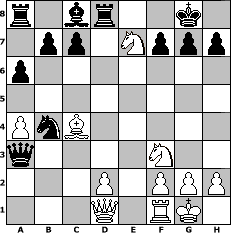 game notation in PGN-format [Event "Sommersonne "] [Site "www.myChess.de"] [Date "2016.05.14"] [Round "1"] [White "miu"] [Black "Ziegert"] [ECO "D20"] [WhitemyELO "1556"] [BlackmyELO "1433"] [Result "1-0"] [TimeControl "10/2592000"] [WhiteDays "58"] [BlackDays "15"] [MyChessNo "103649"] 1. d4 d5 2. c4 dxc4 3. Nc3 Nf6 4. e4 e6 5. Bxc4 Bb4 6. Bg5 O-O 7. e5 Be7 8. exf6 Bxf6 9. Bxf6 Qxf6 10. Nf3 Nc6 11. O-O a6 12. a4 Rd8 13. d5 exd5 14. Nxd5 Qxb2 15. Rb1 Qa3 16. Rb4 Nxb4 17. Ne7+ 1-0 position notation in FEN-format r1br2k1/1pp1Nppp/p7/8/PnB5/q4N2/3P1PPP/3Q1RK1 - - - 1 17 Captured white pieces: Captured black pieces: Click on a captured piece in order to display the desired move!