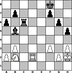 game notation in PGN-format [Event "Drachenboote auf dem Rhein"] [Site "www.myChess.de"] [Date "2009.07.15"] [Round "1"] [White "Caligula"] [Black "brucybabe"] [ECO "B01"] [WhitemyELO "1404"] [BlackmyELO "1604"] [Result "1/2-1/2"] [TimeControl "10/1728000"] [WhiteDays "20"] [BlackDays "20"] [MyChessNo "57499"] 1. e4 d5 2. exd5 Nf6 3. c4 c6 4. Nc3 cxd5 5. Qf3 dxc4 6. Bxc4 e6 7. Nge2 Be7 8. O-O O-O 9. d4 Nc6 10. Be3 a6 11. Rad1 Qc7 12. Bf4 Bd6 13. Bxd6 Qxd6 14. d5 Ne5 15. Qf4 Nxc4 16. Qxc4 exd5 17. Nxd5 Nxd5 18. Rxd5 Qf6 19. Qd4 Qxd4 20. Rxd4 Be6 21. b3 Rfd8 22. Rxd8+ Rxd8 23. Nf4 Bf5 24. Re1 Kf8 25. h3 Rd2 26. Re2 Rd4 27. Nh5 Bd7 28. Kh2 Bc6 29. Ng3 g6 30. f3 h5 31. Rc2 Rd1 32. Ne2 Bb5 33. Nc3 Bd3 34. Rb2 Rc1 35. Na4 Rc6 36. Rd2 Bb5 37. Nb2 1/2-1/2 position notation in FEN-format 5k2/1p3p2/p1r3p1/1b5p/8/1P3P1P/PN1R2PK/8 - - - 13 37 Captured white pieces: Captured black pieces: Click on a captured piece in order to display the desired move!
