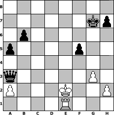 game notation in PGN-format [Event "K"] [Site "www.myChess.de"] [Date "2004.04.28"] [Round "1"] [White "tschulz"] [Black "doctordot2004"] [ECO "C00"] [WhitemyELO "1565"] [BlackmyELO "1487"] [Result "0-1"] [TimeControl "10/3456000"] [WhiteDays "091"] [BlackDays "150"] [MyChessNo "4205"] 1. e4 e6 2. f4 f5 3. Nc3 fxe4 4. Nxe4 Nf6 5. d3 d5 6. Nxf6+ Qxf6 7. d4 c5 8. Nf3 Bd6 9. g3 cxd4 10. Nxd4 Kf8 11. Bh3 Nc6 12. Be3 e5 13. Bxc8 Rxc8 14. Nb5 d4 15. Rf1 Ke7 16. Bd2 e4 17. Qe2 Kf8 18. O-O-O Be7 19. Qxe4 a6 20. Na3 Bxa3 21. bxa3 g6 22. Bb4+ Kg7 23. Bc5 Rhd8 24. Kb1 b6 25. Bb4 a5 26. Be1 Re8 27. Qd3 Re3 28. Qa6 Qe6 29. Qb7+ Ne7 30. f5 gxf5 31. Bf2 Rxc2 32. Qxe7+ Qxe7 33. Bxe3 dxe3 34. Kxc2 e2 35. Rfe1 exd1=Q+ 36. Kxd1 Qd6+ 37. Ke2 Qxa3 0-1 position notation in FEN-format 8/6kp/1p6/p4p2/8/q5P1/P3K2P/4R3 - - - 0 38 Captured white pieces: ![]() ![]() ![]() ![]() ![]() ![]() ![]() ![]() ![]() ![]() ![]() ![]() ![]() ![]() ![]() Captured black pieces: ![]() ![]() ![]() ![]() ![]() ![]() ![]() ![]() ![]() ![]() ![]() ![]() ![]() ![]() ![]() Click on a captured piece in order to display the desired move!