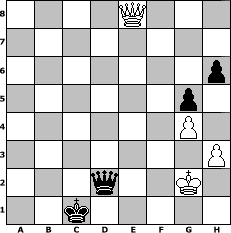 game notation in PGN-format [Event "Valjaux"] [Site "www.myChess.de"] [Date "2025.07.23"] [Round "1"] [White "Haneken"] [Black "skuehnel"] [ECO "C44"] [WhitemyELO "1123"] [BlackmyELO "1366"] [Result "1/2-1/2"] [TimeControl "10/2592000"] [WhiteDays "214"] [BlackDays "207"] [MyChessNo "133526"] 1. e4 e5 2. Nf3 Nc6 3. d3 Bc5 4. Be3 Bxe3 5. fxe3 d6 6. Be2 Nf6 7. O-O O-O 8. Nc3 Be6 9. Ng5 h6 10. Nxe6 fxe6 11. Nb5 a6 12. Nc3 d5 13. Bf3 d4 14. exd4 Qxd4+ 15. Kh1 b5 16. Ne2 Qxb2 17. Ng3 Nd4 18. Qd2 g5 19. a3 c5 20. Rfb1 Qxc2 21. Qxc2 Nxc2 22. Ra2 Nd4 23. Bd1 Rab8 24. Rab2 a5 25. a4 Rb6 26. axb5 Rfb8 27. Ba4 Ne8 28. Nh5 Nd6 29. Nf6+ Kg7 30. Nh5+ Kg6 31. g4 N6xb5 32. Bxb5 Nxb5 33. Rf2 R8b7 34. Rf6+ Kh7 35. Rc1 Nc7 36. Rxc5 Rb5 37. Rc1 a4 38. h3 Rb2 39. Rf7+ Kg8 40. Rg7+ Kf8 41. Rf1+ Ke8 42. Rc1 Rb1 43. Rgxc7 Rxc1+ 44. Rxc1 a3 45. Rc8+ Kd7 46. Ra8 Rb1+ 47. Kg2 Rb2+ 48. Kf3 a2 49. Ra5 Kc6 50. Ng7 Kb6 51. Ra8 Kb5 52. Nxe6 Kb4 53. Ra6 Kc3 54. Ra5 Kc2 55. Nc7 Kb1 56. Nb5 a1=Q 57. Nc3+ Kc2 58. Rxa1 Kxc3 59. Rd1 Rd2 60. Rxd2 Kxd2 61. d4 exd4 62. e5 d3 63. e6 Kc1 64. e7 d2 65. e8=Q d1=Q+ 66. Kg2 Qd2+ 67. Kf3 Qf4+ 68. Kg2 Qd2+ 69. Kf1 Qf4+ 70. Kg2 Qd2+ 1/2-1/2 position notation in FEN-format 4Q3/8/7p/6p1/6P1/7P/3q2K1/2k5 - - - 10 71 Captured white pieces: Captured black pieces: Click on a captured piece in order to display the desired move!
