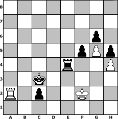 game notation in PGN-format [Event "Der Beste hinter den 1900ern(1/10) oder 10 hoch 2"] [Site "www.myChess.de"] [Date "2009.07.09"] [Round "1"] [White "BobbyF4"] [Black "RashimIbenRohal"] [ECO "C00"] [WhitemyELO "1567"] [BlackmyELO "1522"] [Result "0-1"] [TimeControl "10/864000"] [WhiteDays "03"] [BlackDays "10"] [MyChessNo "57325"] 1. e4 e6 2. c4 d5 3. exd5 exd5 4. cxd5 Nf6 5. d4 Nxd5 6. Bc4 Bb4+ 7. Bd2 Bxd2+ 8. Qxd2 O-O 9. Ne2 Nb6 10. Bd3 Re8 11. O-O Bg4 12. Ng3 Nc6 13. h3 Be6 14. Rd1 Qxd4 15. Qc2 Qh4 16. Nd2 Nb4 17. Qc3 Nxd3 18. Nf3 Qb4 19. Rxd3 Qxc3 20. Rxc3 c6 21. Nd4 Bd5 22. Ndf5 Re6 23. Nd4 Re5 24. f4 Re7 25. b3 Rae8 26. Kf2 g6 27. Rac1 f5 28. a3 Nd7 29. b4 a6 30. a4 Nf6 31. b5 axb5 32. axb5 Ne4+ 33. Nxe4 Rxe4 34. Nf3 Rxf4 35. bxc6 bxc6 36. g3 Rxf3+ 37. Rxf3 Bxf3 38. Kxf3 Re6 39. g4 Kf7 40. g5 h5 41. Rd1 Ke7 42. Kf4 c5 43. Rc1 Re4+ 44. Kf3 c4 45. Rc2 Kd6 46. Rd2+ Kc5 47. Rd8 Re6 48. Rc8+ Rc6 49. Rb8 Kd4 50. Rd8+ Kc3 51. Ke3 Re6+ 52. Kf3 Kc2 53. h4 c3 54. Kf2 Kb3 55. Rb8+ Kc4 56. Rc8+ Kb4 57. Rb8+ Kc5 58. Rb1 Kc4 59. Rb8 Re4 60. Rc8+ Kd3 61. Ra8 c2 62. Ra3+ Kd2 63. Ra2 Kc3 0-1 position notation in FEN-format 8/8/6p1/5pPp/4r2P/2k5/R1p2K2/8 - - - 4 64 Captured white pieces: Captured black pieces: Click on a captured piece in order to display the desired move!