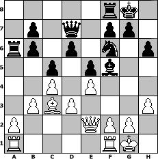 game notation in PGN-format [Event "Summer Games 2021"] [Site "www.myChess.de"] [Date "2021.08.01"] [Round "1"] [White "Haneken"] [Black "borsti"] [ECO "C44"] [WhitemyELO "1116"] [BlackmyELO "1280"] [Result "0-1"] [TimeControl "10/86400"] [WhiteDays "00"] [BlackDays "01"] [MyChessNo "122664"] 1. e4 e5 2. Nf3 Nc6 3. d3 h6 4. Bd2 Nf6 5. Nc3 Bc5 6. Be2 d6 7. O-O O-O 8. Nh4 Nd4 9. Na4 Bb6 10. Nxb6 axb6 11. h3 c5 12. c3 Nxe2+ 13. Qxe2 Be6 14. c4 Qd7 15. Bc3 Ra4 16. b3 Ra6 17. Nf5 Bxf5 0-1 position notation in FEN-format 5rk1/1p1q1pp1/rp1p1n1p/2p1pb2/2P1P3/1PBP3P/P3QPP1/R4RK1 - - - 0 18 Captured white pieces: Captured black pieces: Click on a captured piece in order to display the desired move!