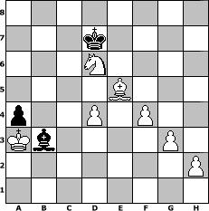 | game notation in PGN-format [Event "Winterturnier"] [Site "www.myChess.de"] [Date "2009.11.12"] [Round "1"] [White "Gauss1233"] [Black "Rotstift10"] [ECO "D30"] [WhitemyELO "1389"] [BlackmyELO "1557"] [Result "1-0"] [TimeControl "10/3456000"] [WhiteDays "198"] [BlackDays "176"] [MyChessNo "60588"] 1. d4 d5 2. c4 e6 3. e3 Nf6 4. Nc3 b6 5. cxd5 Nxd5 6. Bc4 Bb4 7. Bxd5 exd5 8. Qa4+ Nc6 9. Qxc6+ Bd7 10. Qxd5 O-O 11. Bd2 c6 12. Qb3 Bxc3 13. bxc3 Be6 14. Qb2 Bd5 15. f3 Qh4+ 16. g3 Qf6 17. e4 Bc4 18. f4 Rfe8 19. Qc2 Qe6 20. O-O-O Qxe4 21. Qxe4 Rxe4 22. Nf3 Bxa2 23. Kb2 Bd5 24. Rhe1 Rxe1 25. Nxe1 a5 26. Nd3 a4 27. Ka3 Bb3 28. Re1 h6 29. Re7 Rd8 30. Ne5 c5 31. Be3 cxd4 32. Bxd4 b5 33. Rb7 f6 34. Nc6 Rd6 35. Ne7+ Kh7 36. Nf5 Rc6 37. Rxg7+ Kh8 38. Rg6 Rc7 39. Bxf6+ Kh7 40. Rxh6+ Kg8 41. Rh8+ Kf7 42. Be5 Rc5 43. Nd6+ Ke6 44. Re8+ Kd7 45. Rb8 b4+ 46. Rxb4 Rd5 47. Rd4 Rxd4 48. cxd4 1-0 position notation in FEN-format 8/3k4/3N4/4B3/p2P1P2/Kb4P1/7P/8 - - - 0 48 Captured white pieces:                              Captured black pieces:                               Click on a captured piece in order to display the desired move!