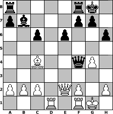 game notation in PGN-format [Event "Wrixum - Open die VII"] [Site "www.myChess.de"] [Date "2010.06.05"] [Round "1"] [White "muetoe"] [Black "martinus"] [ECO "B32"] [WhitemyELO "1877"] [BlackmyELO "1760"] [Result "1/2-1/2"] [TimeControl "10/2592000"] [WhiteDays "28"] [BlackDays "29"] [MyChessNo "66127"] 1. e4 c5 2. Nf3 Nc6 3. d4 cxd4 4. Nxd4 e6 5. Nc3 Nf6 6. Bc4 Bc5 7. Nxc6 bxc6 8. e5 d5 9. exd6 O-O 10. Bg5 h6 11. Bxf6 Qxf6 12. Ne4 Qe5 13. Qe2 Bxd6 14. Nxd6 Qxd6 15. O-O Bb7 16. Rad1 Qc7 17. g4 Qf4 1/2-1/2 position notation in FEN-format r4rk1/pb3pp1/2p1p2p/8/2B2qP1/8/PPP1QP1P/3R1RK1 - - - 1 18 Captured white pieces: Captured black pieces: Click on a captured piece in order to display the desired move!