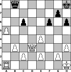 game notation in PGN-format [Event "Wrixum - Open die I."] [Site "www.myChess.de"] [Date "2004.12.11"] [Round "1"] [White "Robur"] [Black "Knight"] [ECO "C68"] [WhitemyELO "1641"] [BlackmyELO "1103"] [Result "1-0"] [TimeControl "10/2592000"] [WhiteDays "30"] [BlackDays "30"] [MyChessNo "8733"] 1. e4 e5 2. Nf3 Nc6 3. Bb5 a6 4. Bxc6 dxc6 5. O-O Bg4 6. h3 Bxf3 7. Qxf3 Nf6 8. d3 Bc5 9. Be3 Bxe3 10. Qxe3 O-O 11. Nc3 b5 12. Qc5 Qe8 13. a4 Qe6 14. a5 Nd7 15. Qe3 c5 16. Nd5 Qd6 17. Qg5 c4 18. dxc4 bxc4 19. Rfd1 Nf6 20. Nb6 Nxe4 21. Qe3 Qc6 22. Nxa8 Rxa8 23. f3 Ng5 24. Qxg5 Qc5+ 25. Kh1 Re8 26. Rd8 Qf8 27. Rxe8 Qxe8 28. Qe3 f6 29. Qc5 c6 30. Qxc4+ Kh8 31. Qxa6 e4 32. fxe4 h6 33. Qd3 Qb8 34. b3 1-0 position notation in FEN-format 1q5k/6p1/2p2p1p/P7/4P3/1P1Q3P/2P1P1P1/R6K - - - 0 34 Captured white pieces: Captured black pieces: Click on a captured piece in order to display the desired move!
