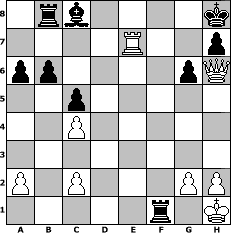 game notation in PGN-format [Event "Hobbyschach"] [Site "www.myChess.de"] [Date "2004.06.26"] [Round "1"] [White "Knight"] [Black "Theresa"] [ECO "B95"] [WhitemyELO "1208"] [BlackmyELO "1393"] [Result "0-1"] [TimeControl "10/1728000"] [WhiteDays "80"] [BlackDays "78"] [MyChessNo "5405"] 1. e4 c5 2. Nf3 d6 3. d4 cxd4 4. Nxd4 Nf6 5. Nc3 a6 6. Bg5 e6 7. Be2 Be7 8. O-O Nxe4 9. Bxe7 Nxc3 10. bxc3 Qxe7 11. f4 Bd7 12. f5 e5 13. Re1 O-O 14. Nb3 Bxf5 15. c4 Nd7 16. Bf3 Nc5 17. Nxc5 dxc5 18. Bd5 Kh8 19. Qf3 Bc8 20. Re2 Rb8 21. Rae1 f6 22. Be4 b6 23. Qh5 f5 24. Bd5 e4 25. Bxe4 fxe4 26. Rxe4 g6 27. Qh6 Qf7 28. Re7 Qf2+ 29. Kh1 Qf1+ 30. Rxf1 Rxf1# 0-1 position notation in FEN-format 1rb4k/4R2p/pp4pQ/2p5/2P5/8/P1P3PP/5r1K - - - 0 31 Captured white pieces: Captured black pieces: Click on a captured piece in order to display the desired move!