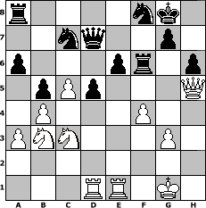 game notation in PGN-format [Event "F"] [Site "www.myChess.de"] [Date "2017.08.16"] [Round "1"] [White "espero"] [Black "muetoe"] [ECO "D00"] [WhitemyELO "1964"] [BlackmyELO "1919"] [Result "1/2-1/2"] [TimeControl "10/2592000"] [WhiteDays "050"] [BlackDays "108"] [MyChessNo "109193"] 1. d4 d5 2. Bf4 Bf5 3. e3 e6 4. Bd3 Bxd3 5. Qxd3 Nd7 6. Nf3 a6 7. O-O Bd6 8. Bg3 Bxg3 9. hxg3 Ngf6 10. c4 c6 11. Nc3 O-O 12. e4 dxe4 13. Nxe4 Qc7 14. Rad1 Rfd8 15. Rfe1 h6 16. Nfd2 b6 17. Qe2 b5 18. c5 Ne8 19. Nf3 Ndf6 20. Nc3 Rac8 21. Ne5 Nd7 22. Qh5 Nf8 23. a3 f6 24. Nf3 Qb7 25. b4 Qd7 26. d5 cxd5 27. Nd4 Nc7 28. f4 Re8 29. Kf2 Ra8 30. Kg1 Re7 31. Nb3 f5 32. g4 Rf7 33. g3 fxg4 34. Qxg4 Rf6 35. Qh5 1/2-1/2 position notation in FEN-format r4nk1/2nq2p1/p3pr1p/1pPp3Q/1P3P2/PNN3P1/8/3RR1K1 - - - 2 35 Captured white pieces: Captured black pieces: Click on a captured piece in order to display the desired move!