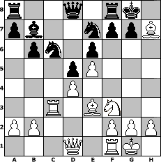 game notation in PGN-format [Event "Hertener Schachfreunde-Jahresstart"] [Site "www.myChess.de"] [Date "2012.02.01"] [Round "1"] [White "Robur"] [Black "Sanji"] [ECO "B30"] [WhitemyELO "1778"] [BlackmyELO "1512"] [Result "1-0"] [TimeControl "10/2592000"] [WhiteDays "20"] [BlackDays "55"] [MyChessNo "79517"] 1. e4 c5 2. Nf3 Nc6 3. c3 b6 4. d4 cxd4 5. cxd4 e6 6. Nc3 Bb7 7. Be2 Bb4 8. O-O Nf6 9. e5 Ng8 10. Be3 d5 11. Rc1 Bxc3 12. Rxc3 Nge7 13. Bd3 O-O 14. Bxh7+ 1-0 position notation in FEN-format r2q1rk1/pb2nppB/1pn1p3/3pP3/3P4/2R1BN2/PP3PPP/3Q1RK1 - - - 0 14 Captured white pieces: Captured black pieces: Click on a captured piece in order to display the desired move!