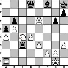 game notation in PGN-format [Event "1. Deutsche Fernschach-Einzelspielerliga (Gr.S3G3)"] [Site "www.myChess.de"] [Date "2008.01.01"] [Round "1"] [White "Ziegert"] [Black "centine@"] [ECO "A03"] [WhitemyELO "1600"] [BlackmyELO "1500"] [Result "1-0"] [TimeControl "10/3456000"] [WhiteDays "51"] [BlackDays "35"] [MyChessNo "41281"] 1. f4 d5 2. Nf3 Nf6 3. e3 g6 4. b4 Bg7 5. Bb2 O-O 6. Be2 a5 7. b5 Bg4 8. a4 Nbd7 9. O-O c6 10. d4 Ne4 11. Na3 c5 12. c3 b6 13. h3 Bxf3 14. Bxf3 c4 15. Bxe4 dxe4 16. Nxc4 Rc8 17. Nd2 Nf6 18. Qc2 Nd5 19. Qxe4 Nxc3 20. Bxc3 Rxc3 21. f5 e6 22. fxe6 fxe6 23. Qxe6+ Kh8 24. Rxf8+ Bxf8 25. Nc4 1-0 position notation in FEN-format 3q1b1k/7p/1p2Q1p1/pP6/P1NP4/2r1P2P/5PP1/R5K1 - - - 1 25 Captured white pieces: Captured black pieces: Click on a captured piece in order to display the desired move!