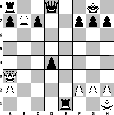game notation in PGN-format [Event "Adventszeit"] [Site "www.myChess.de"] [Date "2022.11.28"] [Round "1"] [White "Haneken"] [Black "Master1"] [ECO "C44"] [WhitemyELO "1167"] [BlackmyELO "1305"] [Result "0-1"] [TimeControl "10/1728000"] [WhiteDays "20"] [BlackDays "20"] [MyChessNo "128308"] 1. e4 e5 2. Nf3 Nc6 3. d3 Nf6 4. Be2 Bc5 5. c3 O-O 6. d4 exd4 7. cxd4 Bb4+ 8. Nc3 Bxc3+ 9. bxc3 Nxe4 10. Bb2 d5 11. Ba3 Re8 12. O-O Nxc3 13. Qc2 Nxe2+ 14. Kh1 Nexd4 15. Nxd4 Nxd4 16. Qc3 Nb5 17. Qd3 Nxa3 18. Qxa3 Bf5 19. Rab1 Bxb1 20. Rxb1 d4 21. Rxb7 Re1# 0-1 position notation in FEN-format r2q2k1/pRp2ppp/8/8/3p4/Q7/P4PPP/4r2K - - - 1 22 Captured white pieces: Captured black pieces: Click on a captured piece in order to display the desired move!