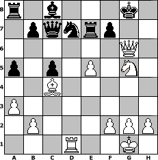 | game notation in PGN-format [Event "Mit freude am Spiel die 3te!!"] [Site "www.myChess.de"] [Date "2017.10.26"] [Round "1"] [White "martinus"] [Black "sprinterde"] [ECO "A40"] [WhitemyELO "1741"] [BlackmyELO "1716"] [Result "1-0"] [TimeControl "10/1728000"] [WhiteDays "20"] [BlackDays "20"] [MyChessNo "110110"] 1. d4 e6 2. c4 Nf6 3. Nc3 Bb4 4. Bd2 O-O 5. Nf3 d6 6. a3 Bxc3 7. Bxc3 Ne4 8. Qc2 d5 9. Bb4 Re8 10. e3 a5 11. Bc3 Nd7 12. Bd3 Nxc3 13. Qxc3 dxc4 14. Bxc4 Nf6 15. O-O Qd6 16. Rac1 Re7 17. Rfe1 Nd5 18. Qd2 Nf6 19. e4 e5 20. Qc2 Nd7 21. Red1 exd4 22. Rxd4 Qb6 23. Rcd1 c6 24. Ng5 c5 25. Rd6 Qc7 26. e5 g6 27. Rxg6+ hxg6 28. Qxg6+ 1-0 position notation in FEN-format r1b3k1/1pqnrp2/6Q1/p1p1P1N1/2B5/P7/1P3PPP/3R2K1 - - - 0 28 Captured white pieces:                              Captured black pieces:                               Click on a captured piece in order to display the desired move!