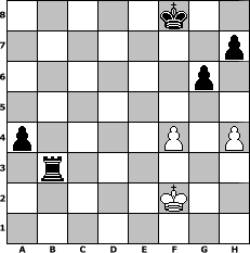 game notation in PGN-format [Event "Einstand"] [Site "www.myChess.de"] [Date "2010.12.10"] [Round "2"] [White "reisender"] [Black "BobbyF4"] [ECO "A40"] [WhitemyELO "1328"] [BlackmyELO "1565"] [Result "0-1"] [TimeControl "10/864000"] [WhiteDays "10"] [BlackDays "07"] [MyChessNo "70487"] 1. d4 g6 2. e3 d5 3. c3 c5 4. Nf3 Bf5 5. g3 c4 6. Bg2 Nc6 7. O-O f6 8. Nbd2 e5 9. dxe5 fxe5 10. Re1 Nf6 11. b3 Ne4 12. Nxe4 Bxe4 13. bxc4 dxc4 14. Qe2 Bd3 15. Qb2 Qf6 16. Qxb7 Rd8 17. Bb2 Bc5 18. Red1 Rd7 19. Qa6 O-O 20. Nxe5 Nxe5 21. Qxf6 Rxf6 22. f4 Ng4 23. Bc1 Nxe3 24. Bxe3 Bxe3+ 25. Kh1 Rb6 26. a4 Rb2 27. Re1 Re7 28. Ra3 Kf8 29. a5 Rb3 30. Ra4 Rxc3 31. Rb4 Ra3 32. a6 c3 33. Bf1 Bxf1 34. Rxf1 c2 35. Rc4 c1=Q 36. Rfxc1 Bxc1 37. Rxc1 Re2 38. Kg1 Rxa6 39. Kf1 Raa2 40. h4 Rf2+ 41. Kg1 Rg2+ 42. Kf1 Rxg3 43. Re1 a5 44. Re2 Rxe2 45. Kxe2 a4 46. Kf2 Rb3 0-1 position notation in FEN-format 5k2/7p/6p1/8/p4P1P/1r6/5K2/8 - - - 2 47 Captured white pieces: Captured black pieces: Click on a captured piece in order to display the desired move!