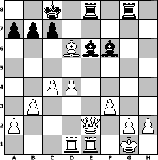 game notation in PGN-format [Event "Symphony "] [Site "www.myChess.de"] [Date "2025.06.15"] [Round "1"] [White "Master1"] [Black "Hobbykegler"] [ECO "D00"] [WhitemyELO "1372"] [BlackmyELO "1033"] [Result "1-0"] [TimeControl "10/2592000"] [WhiteDays "86"] [BlackDays "54"] [MyChessNo "133422"] 1. d4 d5 2. e3 Nc6 3. Bd3 Be6 4. Nf3 Qd6 5. Nbd2 O-O-O 6. O-O Nf6 7. Re1 g6 8. e4 dxe4 9. Nxe4 Nxe4 10. Bxe4 f5 11. Bxc6 Qxc6 12. Ne5 Qd5 13. c3 h5 14. Nxg6 Rg8 15. Qxh5 Qc4 16. Nxe7+ Bxe7 17. Qe2 Qd5 18. f3 f4 19. Bxf4 Bh3 20. Bg3 Be6 21. Rad1 Bf6 22. b3 Rde8 23. c4 Qd6 24. Bxd6 1-0 position notation in FEN-format 2k1r1r1/ppp5/3Bbb2/8/2PP4/1P3P2/P3Q1PP/3RR1K1 - - - 0 24 Captured white pieces: Captured black pieces: Click on a captured piece in order to display the desired move!