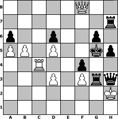 game notation in PGN-format [Event "Make myChess great again...."] [Site "www.myChess.de"] [Date "2017.02.11"] [Round "1"] [White "wolni55"] [Black "faustballer"] [ECO "C41"] [WhitemyELO "1452"] [BlackmyELO "1503"] [Result "0-1"] [TimeControl "10/864000"] [WhiteDays "27"] [BlackDays "58"] [MyChessNo "106855"] 1. e4 e5 2. Nf3 d6 3. Bc4 h6 4. d3 Nf6 5. h3 Be7 6. Nc3 a6 7. Be3 Bd7 8. a3 b5 9. Ba2 c5 10. Nd5 Nxd5 11. Bxd5 Bc6 12. O-O Bxd5 13. exd5 Nd7 14. c4 Nb6 15. b3 Nd7 16. Re1 O-O 17. Nh2 Bg5 18. Nf3 Bxe3 19. Rxe3 Qf6 20. Qd2 Rfe8 21. Re4 Qg6 22. Rg4 Qh7 23. Re1 Nf6 24. Rg3 Nh5 25. Rg4 f5 26. Rh4 Qg6 27. g4 Nf4 28. Kh2 h5 29. g5 Qf7 30. Ng1 g6 31. Ne2 Nxe2 32. Rxe2 f4 33. f3 Rf8 34. b4 Rac8 35. Qa2 Qb7 36. Qb2 Rf5 37. bxc5 Rxc5 38. Qb4 Qb6 39. a4 Rxg5 40. a5 Qd8 41. Ra2 Kf7 42. Qe1 Rg3 43. Rxf4+ exf4 44. Qe6+ Kg7 45. Rc2 Rc7 46. Qe4 Rf7 47. Qd4+ Kh6 48. cxb5 Qd7 49. Qh8+ Rh7 50. Qf8+ Kg5 51. Rc4 Qxh3# 0-1 position notation in FEN-format 5Q2/7r/p2p2p1/PP1P2kp/2R2p2/3P1Prq/7K/8 - - - 0 52 Captured white pieces: Captured black pieces: Click on a captured piece in order to display the desired move!