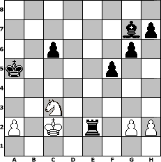 game notation in PGN-format [Event "ZEPPELIN-OPEN-2014-01"] [Site "www.myChess.de"] [Date "2014.09.30"] [Round "1"] [White "borsti"] [Black "Mattheus"] [ECO "C42"] [WhitemyELO "1258"] [BlackmyELO "1215"] [Result "0-1"] [TimeControl "10/3456000"] [WhiteDays "40"] [BlackDays "40"] [MyChessNo "96110"] 1. e4 e5 2. Nf3 Nf6 3. Nxe5 d6 4. Nc4 Nc6 5. d3 Be6 6. Bg5 Qe7 7. Nc3 O-O-O 8. Na3 a6 9. d4 Bg4 10. Be2 Bxe2 11. Qxe2 Nxd4 12. Qd3 Qe5 13. Bxf6 Qxf6 14. f3 c6 15. Nc4 Kc7 16. Na4 b5 17. c3 bxc4 18. Qxd4 Qxd4 19. cxd4 d5 20. O-O-O dxe4 21. fxe4 g6 22. Nc3 Bg7 23. e5 Rhe8 24. Rhe1 a5 25. Ne4 Bh6+ 26. Kc2 f5 27. Nc5 Kb6 28. Kc3 Bg7 29. Kxc4 Rd5 30. Na4+ Ka6 31. b4 axb4 32. Kxb4 Rb8+ 33. Kc4 Ka5 34. Nc3 Rb4+ 35. Kd3 Rdxd4+ 36. Kc2 Rxd1 37. Nxd1 Rb5 38. Nc3 Rxe5 39. Re2 Rxe2+ 0-1 position notation in FEN-format 8/6bp/2p3p1/k4p2/8/2N5/P1K1r1PP/8 - - - 0 40 Captured white pieces: Captured black pieces: Click on a captured piece in order to display the desired move!