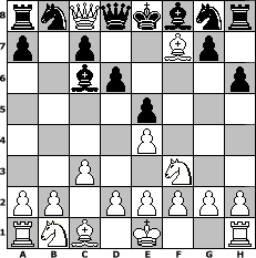 game notation in PGN-format [Event "Weinprobe 2018"] [Site "www.myChess.de"] [Date "2018.10.01"] [Round "1"] [White "Joschi"] [Black "hape50"] [ECO "C41"] [WhitemyELO "1579"] [BlackmyELO "1282"] [Result "1-0"] [TimeControl "10/1728000"] [WhiteDays "20"] [BlackDays "20"] [MyChessNo "113185"] 1. e4 e5 2. Nf3 d6 3. Bc4 h6 4. c3 Bd7 5. Qb3 Qf6 6. Qxb7 Bc6 7. Qc8+ Qd8 8. Bxf7+ 1-0 position notation in FEN-format rnQqkbnr/p1p2Bp1/2bp3p/4p3/4P3/2P2N2/PP1PPPPP/RNB1K2R - KQkq - 0 8 Captured white pieces: Captured black pieces: Click on a captured piece in order to display the desired move!