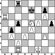 game notation in PGN-format [Event "Türkis"] [Site "www.myChess.de"] [Date "2022.03.27"] [Round "1"] [White "alpacino"] [Black "Master1"] [ECO "C44"] [WhitemyELO "1252"] [BlackmyELO "1314"] [Result "1-0"] [TimeControl "10/864000"] [WhiteDays "39"] [BlackDays "23"] [MyChessNo "125114"] 1. e4 e5 2. Nf3 Nc6 3. d3 Bc5 4. Be3 Nf6 5. Bxc5 d6 6. Be3 O-O 7. a3 Re8 8. Be2 Be6 9. Nc3 d5 10. O-O d4 11. Bxd4 Nxd4 12. Nxe5 Nxe2+ 13. Qxe2 a6 14. Nd1 Qd4 15. Nf3 Qb6 16. b3 Rad8 17. Nb2 Bg4 18. Nc4 Qe6 19. a4 h6 20. h3 Bxf3 21. Qxf3 b6 22. Rfd1 b5 23. axb5 axb5 24. Ne3 c6 25. Nf5 c5 26. Qg3 Nh5 27. Qg4 Qg6 28. Qxg6 fxg6 29. Ne3 Nf4 30. Kf1 h5 31. Ra5 Rb8 32. h4 Re5 33. f3 g5 34. g3 Ne6 35. Rc1 b4 36. Nc4 Nd4 37. Nxe5 Rc8 38. hxg5 Ne6 39. f4 Nd4 40. Ng6 Kf7 41. Ne5+ Ke6 42. Ra6+ Ke7 43. f5 Nf3 44. Nxf3 Kf7 45. Ne5+ Ke7 46. g6 1-0 position notation in FEN-format 2r5/4k1p1/R5P1/2p1NP1p/1p2P3/1P1P2P1/2P5/2R2K2 - - - 0 46 Captured white pieces: Captured black pieces: Click on a captured piece in order to display the desired move!
