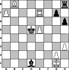 game notation in PGN-format [Event "3. Frankenwaldturnier"] [Site "www.myChess.de"] [Date "2007.05.07"] [Round "2"] [White "MartinSilies"] [Black "Tommy6"] [ECO "C28"] [WhitemyELO "1556"] [BlackmyELO "1513"] [Result "1-0"] [TimeControl "10/1728000"] [WhiteDays "15"] [BlackDays "18"] [MyChessNo "34640"] 1. e4 e5 2. Nc3 Nf6 3. Bc4 Nc6 4. d3 h6 5. f4 exf4 6. Bxf4 d6 7. Nf3 Bg4 8. O-O Be7 9. h3 Bh5 10. Qd2 a6 11. Nd5 Qd7 12. Nxe7 Qxe7 13. Rae1 O-O-O 14. b4 Qf8 15. b5 axb5 16. Bxb5 Na7 17. a4 Nd7 18. Bxd7+ Rxd7 19. Qa5 Nc6 20. Qa8+ Nb8 21. Rb1 c6 22. Nd4 Rc7 23. Nxc6 Rxc6 24. Qxb7+ Kd8 25. Qxb8+ Rc8 26. Qxd6+ Qxd6 27. Bxd6 Kd7 28. e5 Rxc2 29. d4 Rc4 30. a5 Rxd4 31. a6 Be2 32. Rxf7+ Ke6 33. Re7+ Kd5 34. a7 Rd1+ 35. Rxd1+ Bxd1 36. Bb8 1-0 position notation in FEN-format 1B5r/P3R1p1/7p/3kP3/8/7P/6P1/3b2K1 - - - 1 36 Captured white pieces: ![]() ![]() ![]() ![]() ![]() ![]() ![]() ![]() ![]() ![]() ![]() ![]() ![]() ![]() ![]() Captured black pieces: ![]() ![]() ![]() ![]() ![]() ![]() ![]() ![]() ![]() ![]() ![]() ![]() ![]() ![]() ![]() Click on a captured piece in order to display the desired move!