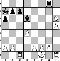 game notation in PGN-format [Event "Kleins Blitzel"] [Site "www.myChess.de"] [Date "2004.07.27"] [Round "1"] [White "TAR"] [Black "Knight"] [ECO "C57"] [WhitemyELO "1744"] [BlackmyELO "1395"] [Result "1-0"] [TimeControl "10/864000"] [WhiteDays "05"] [BlackDays "10"] [MyChessNo "5882"] 1. e4 e5 2. Nf3 Nc6 3. Bc4 Nf6 4. Ng5 d5 5. exd5 Nxd5 6. d4 Nxd4 7. c3 h6 8. Nxf7 Kxf7 9. cxd4 Be6 10. Nc3 Ke8 11. Nxd5 Bxd5 12. Qh5+ Kd7 13. Bxd5 Kc8 14. Qxe5 Bd6 15. Qxg7 Re8+ 16. Kf1 Bb4 17. Bf4 Kb8 18. Rc1 Bd6 19. Bxh6 a6 20. Qg6 Ka7 21. h4 Rg8 22. Qxg8 Qxg8 23. Bxg8 Rxg8 24. h5 1-0 position notation in FEN-format 6r1/kpp5/p2b3B/7P/3P4/8/PP2PPP1/2R2K1R - - - 0 24 Captured white pieces: Captured black pieces: Click on a captured piece in order to display the desired move!