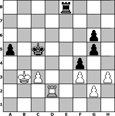 game notation in PGN-format [Event "MNX1"] [Site "www.myChess.de"] [Date "2015.03.13"] [Round "1"] [White "kalle"] [Black "martinus"] [ECO "B32"] [WhitemyELO "1603"] [BlackmyELO "1742"] [Result "1/2-1/2"] [TimeControl "10/2592000"] [WhiteDays "30"] [BlackDays "30"] [MyChessNo "98505"] 1. e4 c5 2. Nf3 Nc6 3. d4 cxd4 4. Nxd4 e5 5. Nb5 d6 6. Bc4 a6 7. N5c3 Nf6 8. a4 Be6 9. Ba2 Bxa2 10. Rxa2 Nb4 11. Ra3 d5 12. exd5 Nbxd5 13. Nxd5 Qxd5 14. Qxd5 Nxd5 15. Rb3 Nb4 16. c3 Nd3+ 17. Ke2 O-O-O 18. Be3 Nc5 19. Rb4 Nd3 20. Rb6 Nxb2 21. Rxb2 f5 22. Rd2 Bd6 23. Bg5 Rd7 24. Rhd1 Kc7 25. Na3 h6 26. Nc4 hxg5 27. Nxd6 Rdd8 28. h3 g6 29. Nc4 Rxd2+ 30. Rxd2 Rh4 31. Nxe5 Re4+ 32. Kd3 Rxe5 33. Kc4 Kc6 34. f3 Rc5+ 35. Kb4 a5+ 36. Kb3 b5 37. Re2 Kd5 38. Rd2+ Kc6 39. axb5+ Rxb5+ 40. Ka4 Re5 41. Rb2 f4 42. Rd2 Kc5 43. Kb3 Re8 1/2-1/2 position notation in FEN-format 4r3/8/6p1/p1k3p1/5p2/1KP2P1P/3R2P1/8 - - - 4 44 Captured white pieces: Captured black pieces: Click on a captured piece in order to display the desired move!