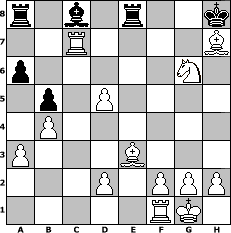 game notation in PGN-format [Event "und immer wieder Schach !"] [Site "www.myChess.de"] [Date "2009.11.06"] [Round "1"] [White "Naunhofer"] [Black "Ostseeboy"] [ECO "E20"] [WhitemyELO "1590"] [BlackmyELO "1202"] [Result "1-0"] [TimeControl "10/864000"] [WhiteDays "29"] [BlackDays "30"] [MyChessNo "60430"] 1. d4 Nf6 2. c4 e6 3. Nc3 Be7 4. Nf3 O-O 5. e4 b6 6. Bd3 g6 7. O-O Bb7 8. Qc2 Nc6 9. a3 a6 10. b4 d5 11. e5 Nd7 12. cxd5 exd5 13. Nxd5 b5 14. Be3 Kg7 15. Nf4 Nb6 16. Rac1 Nd7 17. d5 Na7 18. Qxc7 Qxc7 19. Rxc7 Bc8 20. Bxa7 Kh6 21. Be3 Re8 22. Ne6+ g5 23. Nexg5 Bxg5 24. Nxg5 Nxe5 25. Nxf7+ Kg7 26. Nxe5+ Kg8 27. Bxh7+ Kh8 28. Ng6# 1-0 position notation in FEN-format r1b1r2k/2R4B/p5N1/1p1P4/1P6/P3B3/3P1PPP/5RK1 - - - 2 28 Captured white pieces: Captured black pieces: Click on a captured piece in order to display the desired move!