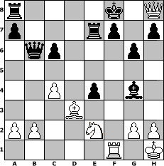 game notation in PGN-format [Event "Nuevo Relax 2010"] [Site "www.myChess.de"] [Date "2010.09.02"] [Round "1"] [White "Haki"] [Black "beowulf"] [ECO "B38"] [WhitemyELO "1323"] [BlackmyELO "1373"] [Result "1-0"] [TimeControl "10/3456000"] [WhiteDays "120"] [BlackDays "120"] [MyChessNo "68090"] 1. e4 c5 2. Nf3 Nc6 3. d4 cxd4 4. Nxd4 g6 5. c4 Bg7 6. Be3 Nf6 7. Bd3 O-O 8. O-O e6 9. Nxc6 bxc6 10. e5 Ne8 11. f4 d6 12. Nc3 dxe5 13. Qd2 exf4 14. Bxf4 e5 15. Be3 Nf6 16. Bh6 Re8 17. Bxg7 Kxg7 18. Rad1 Bg4 19. Ne2 Qb6+ 20. Kh1 e4 21. Rxf6 Kxf6 22. Qf4+ Kg7 23. Rf1 Re7 24. Qf6+ Kf8 25. Qh8# 1-0 position notation in FEN-format r4k1Q/p3rp1p/1qp3p1/8/2P1p1b1/3B4/PP2N1PP/5R1K - - - 7 25 Captured white pieces: Captured black pieces: Click on a captured piece in order to display the desired move!