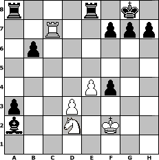 game notation in PGN-format [Event "Netzwerk Vulkaneifel"] [Site "www.myChess.de"] [Date "2021.11.05"] [Round "1"] [White "Haneken"] [Black "beowulf"] [ECO "C44"] [WhitemyELO "1086"] [BlackmyELO "1415"] [Result "0-1"] [TimeControl "10/1728000"] [WhiteDays "19"] [BlackDays "20"] [MyChessNo "123383"] 1. e4 e5 2. Nf3 Nc6 3. d3 Nf6 4. Be2 d5 5. O-O d4 6. Qd2 Be6 7. h3 Bb4 8. c3 Bc5 9. b4 dxc3 10. Nxc3 Nd4 11. bxc5 b6 12. c6 Nxc6 13. Nb5 O-O 14. Ba3 Re8 15. Rac1 Bd7 16. Qe3 a6 17. g4 axb5 18. Rc3 b4 19. Rc4 bxa3 20. g5 Nh5 21. Nd2 Nf4 22. Bh5 Nxh3+ 23. Kg2 Nxg5 24. f4 Ne6 25. f5 Nf4+ 26. Kf3 Nxh5 27. Rh1 Nf4 28. Rg1 Qh4 29. Rg4 Qh1+ 30. Kf2 Nd4 31. Rxf4 Qh2+ 32. Ke1 exf4 33. Qxd4 Bxf5 34. Qf2 Qxf2+ 35. Kxf2 Be6 36. Rxc7 Bxa2 0-1 position notation in FEN-format r3r1k1/2R2ppp/1p6/8/4Pp2/p2P4/b2N1K2/8 - - - 0 37 Captured white pieces: Captured black pieces: Click on a captured piece in order to display the desired move!