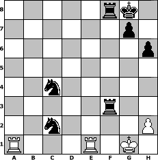 game notation in PGN-format [Event "1. HSF-Clubmeisterschaft, Vorrunde A"] [Site "www.myChess.de"] [Date "2010.09.01"] [Round "1"] [White "alpacino"] [Black "UPS"] [ECO "B23"] [WhitemyELO "1310"] [BlackmyELO "1701"] [Result "0-1"] [TimeControl "10/2592000"] [WhiteDays "29"] [BlackDays "30"] [MyChessNo "68010"] 1. e4 c5 2. Nc3 Nc6 3. Nf3 e6 4. a3 a6 5. Bd3 Be7 6. O-O Bf6 7. Na4 d6 8. Nc3 Nge7 9. b3 O-O 10. Bb2 Qc7 11. Re1 b5 12. Rb1 Bb7 13. Ne2 Bxb2 14. Rxb2 Ng6 15. c3 f5 16. Ng5 Nd8 17. c4 h6 18. exf5 exf5 19. Nh3 Ne6 20. Bc2 Qc6 21. f3 Ne5 22. Rf1 bxc4 23. Bxf5 Rxf5 24. bxc4 Raf8 25. d3 Ba8 26. Nc3 Nc7 27. Ne4 d5 28. cxd5 Nxd5 29. Qd2 c4 30. dxc4 Qxc4 31. Nd6 Qc5+ 32. Nf2 Qxd6 33. Ne4 Qxa3 34. Ra2 Qe3+ 35. Qxe3 Nxe3 36. Re1 N5c4 37. Rxa6 Bxe4 38. Ra4 Bxf3 39. gxf3 Rxf3 40. Raa1 Nc2 0-1 position notation in FEN-format 5rk1/6p1/7p/8/2n5/5r2/2n4P/R3R1K1 - - - 2 41 Captured white pieces: ![]() ![]() ![]() ![]() ![]() ![]() ![]() ![]() ![]() ![]() ![]() ![]() ![]() ![]() ![]() Captured black pieces: ![]() ![]() ![]() ![]() ![]() ![]() ![]() ![]() ![]() ![]() ![]() ![]() ![]() ![]() ![]() Click on a captured piece in order to display the desired move!