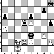 game notation in PGN-format [Event "Adevnt Advent "] [Site "www.myChess.de"] [Date "2018.12.04"] [Round "1"] [White "alibengali"] [Black "Helmut48"] [ECO "B63"] [WhitemyELO "1697"] [BlackmyELO "2055"] [Result "0-1"] [TimeControl "10/2592000"] [WhiteDays "103"] [BlackDays "113"] [MyChessNo "113642"] 1. e4 c5 2. Nf3 d6 3. d4 cxd4 4. Nxd4 Nf6 5. Nc3 Nc6 6. Bg5 e6 7. Qd2 Be7 8. O-O-O O-O 9. Ndb5 Qa5 10. Bxf6 Bxf6 11. Nxd6 Rd8 12. f4 e5 13. Bc4 Be6 14. Bxe6 fxe6 15. Qe3 Qc7 16. Ncb5 Qe7 17. Qb3 Na5 18. Qc3 Nc6 19. Qb3 Kh8 20. fxe5 Nxe5 21. Nc4 Nxc4 22. Qxc4 a6 23. Nc3 Rdc8 24. Qb3 Rc6 25. Rd3 Qc7 26. g3 h6 27. Rhd1 Rc8 28. Rd7 Qa5 29. Rxb7 Bxc3 30. bxc3 Rxc3 31. Rb8 Rxc2+ 32. Qxc2 Rxb8 33. Rd2 Qa3+ 34. Kd1 Qe3 35. Kc1 Rd8 36. a4 h5 37. e5 Rd5 0-1 position notation in FEN-format 7k/6p1/p3p3/3rP2p/P7/4q1P1/2QRP2P/2K5 - - - 1 38 Captured white pieces: Captured black pieces: Click on a captured piece in order to display the desired move!