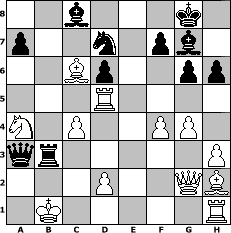 game notation in PGN-format [Event "Endlich Fr"] [Site "www.myChess.de"] [Date "2014.03.25"] [Round "1"] [White "reisinger"] [Black "miu"] [ECO "E61"] [WhitemyELO "1487"] [BlackmyELO "1480"] [Result "0-1"] [TimeControl "10/1728000"] [WhiteDays "60"] [BlackDays "50"] [MyChessNo "93628"] 1. d4 Nf6 2. c4 g6 3. Nc3 Bg7 4. Bf4 O-O 5. e3 d6 6. h3 Nbd7 7. Be2 e5 8. Bh2 e4 9. Qc2 Re8 10. g4 h6 11. O-O-O c6 12. d5 Ne5 13. f4 Nf3 14. Nxf3 exf3 15. Bxf3 Rxe3 16. Qg2 Nd7 17. dxc6 bxc6 18. Bxc6 Rb8 19. Na4 Qa5 20. Rd5 Qb4 21. b3 Qa3+ 22. Kb1 Rbxb3+ 23. axb3 Rxb3+ 0-1 position notation in FEN-format 2b3k1/p2n1pb1/2Bp2pp/3R4/N1P2PP1/qr5P/3P2QB/1K5R - - - 0 24 Captured white pieces: Captured black pieces: Click on a captured piece in order to display the desired move!