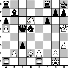game notation in PGN-format [Event "7. Frankenwaldturnier"] [Site "www.myChess.de"] [Date "2008.07.18"] [Round "2"] [White "Tal"] [Black "ujack1961"] [ECO "C78"] [WhitemyELO "1521"] [BlackmyELO "1674"] [Result "0-1"] [TimeControl "10/864000"] [WhiteDays "30"] [BlackDays "30"] [MyChessNo "46420"] 1. e4 e5 2. Nf3 Nc6 3. Bb5 a6 4. Ba4 Nf6 5. O-O b5 6. Bb3 Be7 7. Re1 O-O 8. a4 Bb7 9. d3 b4 10. a5 Bc5 11. h3 d5 12. exd5 Nxd5 13. Nxe5 Bxf2+ 14. Kxf2 Nxe5 15. Kg1 f6 16. Nd2 c5 17. Ne4 Qc7 18. Qh5 Kh8 19. Bd2 c4 20. dxc4 Nxc4 21. Bxc4 Qxc4 22. c3 bxc3 23. Nd6 Qc5+ 0-1 position notation in FEN-format r4r1k/1b4pp/p2N1p2/P1qn3Q/8/2p4P/1P1BP1P1/R3R1K1 - - - 2 24 Captured white pieces: Captured black pieces: Click on a captured piece in order to display the desired move!