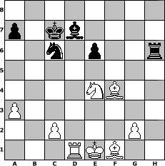 game notation in PGN-format [Event "Winawer"] [Site "www.myChess.de"] [Date "2004.02.10"] [Round "1"] [White "VanGott"] [Black "Sanji"] [ECO "C18"] [WhitemyELO "1772"] [BlackmyELO "1654"] [Result "1-0"] [TimeControl "10/2592000"] [WhiteDays "103"] [BlackDays "115"] [MyChessNo "2244"] 1. e4 e6 2. d4 d5 3. Nc3 Bb4 4. e5 c5 5. a3 Bxc3 6. bxc3 Ne7 7. Qg4 Qc7 8. Qxg7 Rg8 9. Qxh7 cxd4 10. Ne2 dxc3 11. f4 Nbc6 12. h4 Bd7 13. h5 O-O-O 14. Qd3 Nxe5 15. fxe5 Qxe5 16. Qxc3+ Qxc3+ 17. Nxc3 d4 18. Ne4 f5 19. Nd6+ Kc7 20. Nf7 Rdf8 21. Bf4+ Kc8 22. Nd6+ Kd8 23. Nxb7+ Ke8 24. h6 Rh8 25. Nd6+ Kd8 26. Be5 Rh7 27. Bxd4 Nc6 28. Bc5 Rf6 29. Rd1 Kc7 30. Be3 f4 31. Ne4 Rfxh6 32. Rxh6 Rxh6 33. Bxf4+ 1-0 position notation in FEN-format 8/p1kb4/2n1p2r/8/4NB2/P7/2P3P1/3RKB2 - - - 0 33 Captured white pieces: ![]() ![]() ![]() ![]() ![]() ![]() ![]() ![]() ![]() ![]() ![]() ![]() ![]() ![]() ![]() Captured black pieces: ![]() ![]() ![]() ![]() ![]() ![]() ![]() ![]() ![]() ![]() ![]() ![]() ![]() ![]() ![]() Click on a captured piece in order to display the desired move!