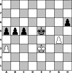 game notation in PGN-format [Event "Turnier zum Tag der deutschen Einheit"] [Site "www.myChess.de"] [Date "2010.10.04"] [Round "1"] [White "Caligula"] [Black "hape50"] [ECO "C34"] [WhitemyELO "1374"] [BlackmyELO "1341"] [Result "0-1"] [TimeControl "10/1728000"] [WhiteDays "100"] [BlackDays "098"] [MyChessNo "68776"] 1. e4 e5 2. f4 exf4 3. Nf3 Nc6 4. d4 g6 5. Bxf4 d6 6. Bc4 Na5 7. Bd3 Bg7 8. c3 Ne7 9. b4 Nac6 10. O-O Bg4 11. Qb3 Qd7 12. e5 dxe5 13. Be3 exd4 14. cxd4 Bxf3 15. Rxf3 O-O-O 16. Rf4 Bh6 17. Rf3 Bxe3+ 18. Rxe3 f5 19. Bb5 Qxd4 20. Qe6+ Kb8 21. Nc3 Nxb4 22. Qxe7 Nc2 23. Rd1 Qxe3+ 24. Qxe3 Nxe3 25. Re1 f4 26. g3 g5 27. Ne4 Rd1 28. Rxd1 Nxd1 29. Nxg5 fxg3 30. h3 h6 31. Ne4 Rg8 32. Bc4 Rg7 33. Bf1 Ne3 34. Be2 g2 35. Bf3 b6 36. Nf2 c5 37. Ng4 Nxg4 38. Bxg4 Kc7 39. Kxg2 Rxg4+ 40. hxg4 Kd6 41. Kf3 Ke5 42. Ke3 b5 43. a3 a5 0-1 position notation in FEN-format 8/8/7p/ppp1k3/6P1/P3K3/8/8 - - - 0 44 Captured white pieces: Captured black pieces: Click on a captured piece in order to display the desired move!
