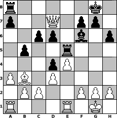 game notation in PGN-format [Event "Schneekönigin"] [Site "www.myChess.de"] [Date "2018.02.15"] [Round "2"] [White "alpacino"] [Black "lotchi"] [ECO "C25"] [WhitemyELO "1306"] [BlackmyELO "1084"] [Result "1-0"] [TimeControl "10/2592000"] [WhiteDays "60"] [BlackDays "20"] [MyChessNo "111454"] 1. e4 e5 2. Nc3 Nc6 3. Nf3 Nf6 4. Bc4 h6 5. d3 d6 6. Be3 Bg4 7. Qe2 Bxf3 8. Qxf3 Be7 9. Nd5 Nd4 10. Nxf6+ Bxf6 11. Bxd4 exd4 12. O-O O-O 13. Rfe1 c6 14. a3 b5 15. Bb3 Re8 16. Qh5 Qd7 17. Qf5 Re5 18. Qxd7 1-0 position notation in FEN-format r5k1/p2Q1pp1/2pp1b1p/1p2r3/3pP3/PB1P4/1PP2PPP/R3R1K1 - - - 0 18 Captured white pieces: Captured black pieces: Click on a captured piece in order to display the desired move!