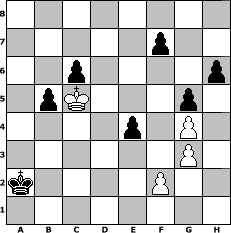 game notation in PGN-format [Event "Gary COME BACK Turnier"] [Site "www.myChess.de"] [Date "2005.03.18"] [Round "1"] [White "Joschi"] [Black "Naunhofer"] [ECO "C42"] [WhitemyELO "1601"] [BlackmyELO "1691"] [Result "0-1"] [TimeControl "10/1728000"] [WhiteDays "20"] [BlackDays "20"] [MyChessNo "11305"] 1. e4 e5 2. Nf3 Nf6 3. Nxe5 d6 4. Nf3 Nxe4 5. d4 d5 6. Bd3 Bf5 7. Nbd2 Be7 8. Ne5 Nd7 9. Nxe4 Nxe5 10. dxe5 dxe4 11. Be2 h6 12. Bf4 Bc5 13. O-O O-O 14. c3 Qe7 15. Qb3 c6 16. Rad1 Rad8 17. Rxd8 Rxd8 18. Rd1 Rxd1+ 19. Qxd1 a5 20. h3 b5 21. Bg4 Qh4 22. g3 Bxg4 23. Qxg4 Qxg4 24. hxg4 g5 25. Bd2 Kf8 26. b4 axb4 27. cxb4 Bd4 28. Kf1 Ke7 29. Ke2 Ke6 30. Be3 Kxe5 31. Bxd4+ Kxd4 32. Kd2 Kc4 33. Ke3 Kxb4 34. Kd4 Ka3 35. Kc5 Kxa2 0-1 position notation in FEN-format 8/5p2/2p4p/1pK3p1/4p1P1/6P1/k4P2/8 - - - 0 36 Captured white pieces: Captured black pieces: Click on a captured piece in order to display the desired move!