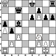 game notation in PGN-format [Event "!!!Turnier in den Sommer!!!"] [Site "www.myChess.de"] [Date "2011.03.02"] [Round "1"] [White "Schachfedi"] [Black "espero"] [ECO "A04"] [WhitemyELO "1774"] [BlackmyELO "1652"] [Result "1-0"] [TimeControl "10/1728000"] [WhiteDays "24"] [BlackDays "41"] [MyChessNo "72481"] 1. Nf3 c5 2. e4 Nc6 3. Nc3 g6 4. Bb5 Bg7 5. O-O Nd4 6. Re1 Nxb5 7. Nxb5 a6 8. Nc3 b5 9. e5 Bb7 10. a4 b4 11. Ne4 Bxe4 12. Rxe4 d5 13. Re1 e6 14. d4 cxd4 15. Qxd4 a5 16. Bg5 Qc7 17. c3 h6 18. Bf6 Nxf6 19. exf6 Bf8 20. Qxd5 Bc5 21. Qxa8+ 1-0 position notation in FEN-format Q3k2r/2q2p2/4pPpp/p1b5/Pp6/2P2N2/1P3PPP/R3R1K1 - kq - 0 21 Captured white pieces: ![]() ![]() ![]() ![]() ![]() ![]() ![]() ![]() ![]() ![]() ![]() ![]() ![]() ![]() ![]() Captured black pieces: ![]() ![]() ![]() ![]() ![]() ![]() ![]() ![]() ![]() ![]() ![]() ![]() ![]() ![]() ![]() Click on a captured piece in order to display the desired move!