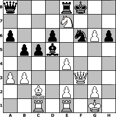 game notation in PGN-format [Event "Schachturnier Eins"] [Site "www.myChess.de"] [Date "2015.11.01"] [Round "1"] [White "Joschi"] [Black "Andylein1989"] [ECO "C78"] [WhitemyELO "1641"] [BlackmyELO "1532"] [Result "1-0"] [TimeControl "10/1728000"] [WhiteDays "20"] [BlackDays "20"] [MyChessNo "101070"] 1. e4 e5 2. Nf3 Nc6 3. Bb5 a6 4. Ba4 Nf6 5. O-O b5 6. Bb3 Bb7 7. Re1 Be7 8. c3 O-O 9. d4 exd4 10. cxd4 d6 11. a3 Na5 12. Bc2 Nc4 13. b3 Nb6 14. Bb2 h6 15. Nbd2 Nh7 16. Nf1 Ng5 17. Nxg5 Bxg5 18. Ng3 g6 19. Qd3 Re8 20. Rad1 Nd7 21. Bc1 Bxc1 22. Rxc1 Nf6 23. f4 c5 24. d5 Ra7 25. Qf3 Ba8 26. f5 Kg7 27. h4 Rae7 28. fxg6 fxg6 29. h5 Bxd5 30. hxg6 Qa8 31. Nf5+ Kf8 32. Nxe7 1-0 position notation in FEN-format q3rk2/4N3/p2p1nPp/1ppb4/4P3/PP3Q2/2B1P1P1/2R1R1K1 - - - 0 32 Captured white pieces: Captured black pieces: Click on a captured piece in order to display the desired move!