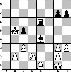 game notation in PGN-format [Event "Unter 1501"] [Site "www.myChess.de"] [Date "2020.08.24"] [Round "2"] [White "Master1"] [Black "Hobbykegler"] [ECO "D00"] [WhitemyELO "1264"] [BlackmyELO "996"] [Result "1-0"] [TimeControl "10/2592000"] [WhiteDays "97"] [BlackDays "75"] [MyChessNo "119150"] 1. d4 d5 2. e3 Nc6 3. Bd3 e5 4. dxe5 Nxe5 5. Nf3 Nxf3+ 6. Qxf3 c6 7. O-O Qc7 8. Nd2 Bd7 9. Re1 Be7 10. Nf1 O-O-O 11. h3 Re8 12. e4 dxe4 13. Bxe4 Nf6 14. Bf4 Qb6 15. Rab1 Nxe4 16. Qxe4 Bb4 17. Be3 Qb5 18. Qf3 Rhf8 19. c3 Bc5 20. Bxc5 Qxc5 21. Rxe8+ Rxe8 22. Qxf7 Re7 23. Qf3 Qg5 24. a4 a5 25. Ne3 c5 26. Qf8+ Kc7 27. Qf3 Re6 28. Nc4 Bc6 29. Qg3+ Qxg3 30. fxg3 b5 31. Nxa5 Bd5 32. axb5 Be4 33. Re1 Kb6 34. Nc4+ Kxb5 35. Nd2 1-0 position notation in FEN-format 8/6pp/4r3/1kp5/4b3/2P3PP/1P1N2P1/4R1K1 - - - 1 35 Captured white pieces: Captured black pieces: Click on a captured piece in order to display the desired move!