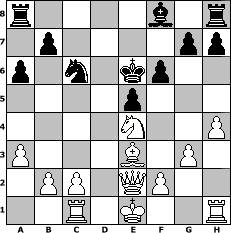 game notation in PGN-format [Event "M"] [Site "www.myChess.de"] [Date "2017.03.24"] [Round "1"] [White "Achimkogge"] [Black "Haneken"] [ECO "C41"] [WhitemyELO "1373"] [BlackmyELO "1072"] [Result "1-0"] [TimeControl "10/1728000"] [WhiteDays "54"] [BlackDays "52"] [MyChessNo "107541"] 1. e4 e5 2. Nf3 d6 3. d4 Nc6 4. Bb5 Bd7 5. d5 Nb4 6. Nc3 Qf6 7. Bxd7+ Kxd7 8. Bg5 Qg6 9. h4 f6 10. g3 c6 11. Be3 cxd5 12. Rc1 dxe4 13. Nd2 Ne7 14. Ndxe4 Nf5 15. a3 Nc6 16. Bd2 Nfd4 17. Be3 d5 18. Nd2 a6 19. Nxd5 Kd6 20. Nb4 Ke6 21. Nxc6 Nxc6 22. Qe2 Qe4 23. Nxe4 1-0 position notation in FEN-format r4b1r/1p4pp/p1n1kp2/4p3/4N2P/P3B1P1/1PP1QP2/2R1K2R - K - 0 23 Captured white pieces: Captured black pieces: Click on a captured piece in order to display the desired move!