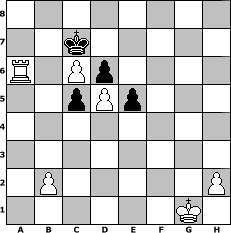 | game notation in PGN-format [Event "BENONI"] [Site "www.myChess.de"] [Date "2005.06.20"] [Round "1"] [White "NoBody"] [Black "Antaeus"] [ECO "A56"] [WhitemyELO "1772"] [BlackmyELO "1674"] [Result "1-0"] [TimeControl "10/864000"] [WhiteDays "10"] [BlackDays "09"] [MyChessNo "14200"] 1. d4 Nf6 2. c4 c5 3. d5 d6 4. Nc3 a6 5. a4 Bg4 6. f3 Bh5 7. e4 e5 8. Nge2 Nbd7 9. Ng3 Qe7 10. Bd3 Qd8 11. O-O g6 12. Nge2 Bg7 13. g4 Nxg4 14. fxg4 Bxg4 15. Qe1 Bh3 16. Rf3 Bg4 17. Rf2 Qh4 18. Ng3 h6 19. Nd1 Bh3 20. Ne3 Bf6 21. Bf1 Bg5 22. Bxh3 Qxh3 23. Ra3 Bh4 24. Ng2 Qg4 25. Nxh4 Qxh4 26. Raf3 Rh7 27. a5 h5 28. Bd2 Qe7 29. Qe3 h4 30. Ne2 Qd8 31. Qb3 Qc7 32. Qa4 Rg7 33. Bg5 Rh7 34. Bf6 Qb8 35. Rh3 b5 36. axb6 Qxb6 37. Nc3 Qb7 38. Rxh4 Rxh4 39. Bxh4 Rb8 40. Qc6 Qxc6 41. dxc6 Nb6 42. Nd5 Nxd5 43. cxd5 f5 44. exf5 gxf5 45. Rxf5 Rb4 46. Rh5 Rxh4 47. Rxh4 Kd8 48. Ra4 Kc7 49. Rxa6 1-0 position notation in FEN-format 8/2k5/R1Pp4/2pPp3/8/8/1P5P/6K1 - - - 0 49 Captured white pieces:                              Captured black pieces:                               Click on a captured piece in order to display the desired move!
