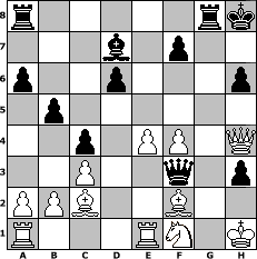 game notation in PGN-format [Event "Schach dem Osterhasen IV"] [Site "www.myChess.de"] [Date "2015.03.29"] [Round "1"] [White "Andylein1989"] [Black "hape50"] [ECO "C41"] [WhitemyELO "1499"] [BlackmyELO "1330"] [Result "0-1"] [TimeControl "10/2592000"] [WhiteDays "102"] [BlackDays "119"] [MyChessNo "98706"] 1. e4 e5 2. Nf3 d6 3. Bc4 h6 4. O-O Nf6 5. d3 a6 6. Nbd2 c5 7. h3 Nc6 8. c3 Be7 9. Re1 O-O 10. Nf1 b5 11. Bb3 Nh5 12. Nxe5 Nxe5 13. Qxh5 Nxd3 14. Re3 Nf4 15. Qf3 c4 16. Bc2 Bg5 17. Re1 Bb7 18. Bxf4 Bc6 19. Qg3 Bh4 20. Qf3 g5 21. Be3 Bd7 22. g3 g4 23. Qe2 gxh3 24. gxh4 Qf6 25. f4 Qxh4 26. Qh2 Kh8 27. Bf2 Rg8+ 28. Kh1 Qg4 29. Qg3 Qh5 30. Qh4 Qf3+ 0-1 position notation in FEN-format r5rk/3b1p2/p2p3p/1p6/2p1PP1Q/2P2q1p/PPB2B2/R3RN1K - - - 10 31 Captured white pieces: Captured black pieces: Click on a captured piece in order to display the desired move!